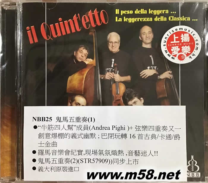 il Quint'etto Live 鬼馬五重奏 (1)(m58.net) ROSARIO GENOVESE violin RUGGIERO SFREGOLA violin GIOVANNI LEONETTI viola FRANCESCO DI DONNA cello ANDREA PIGHI double bass 創意爆棚的義式幽默 , 巴閉玩轉16首古典/卡通/爵士金曲 現埸氣氛熾熱 音效駭人 試音最佳利器 STR57909鬼馬五重奏 (2) 同步上市 意大利原裝進口