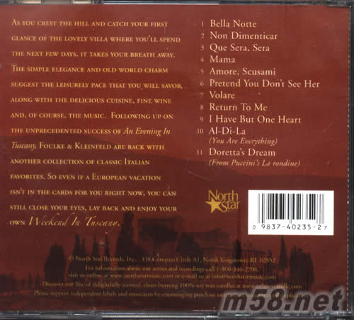 托斯卡枘的周末WEEKEND IN TUSCANY專輯背面圖片