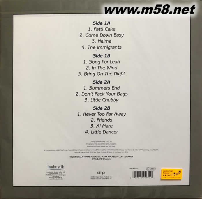 托姆 羅特拉樂隊爵士四重奏 Thom Rotella Band 低音吉它、鋼琴、鼓 雙黑膠專輯背面圖片