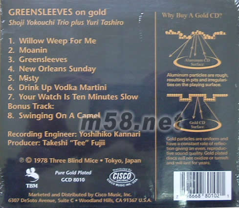GREENSLEEVES ON GOLD 24k金碟(m58.net) SHOJI YOKOUCHI TRIO PLUS YURI TASHIRO 出版工程師:YOSHIHIKO KANNARI PRODUCER:TAKESHI “TEE”FUJII THREE BLIND MICE