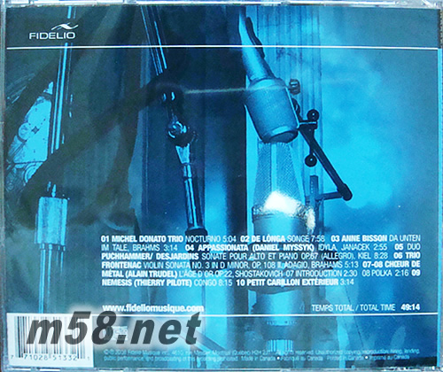 01. MICHEL DONATO TRIO / NOCTURNO 02. DE LNGA / SONGE 03. ANNE BISSON / DA UNTEN IM TALE, BRAHMS 04. APPASSIONATA (DANIEL MYSSYK) / IDYLA, JANACEK 05. DUO PUCHHAMMER & DES JARDINS / SONATA POUR ALTO ET PIANO OP.67 (ALLEGRO) KIEL 06. TRIO FRONTENAC / VIOLIN SONATA NO.3 IN D MINOR OP.108 II. ADAGIO, BRAHAMS 07. CHOEUR DE METAL (ALAIN TRUDEL) / L'ÂGE D'OR OP.22, SHOSTAKOVICH INTRODUCTION 08. CHOEUR DE METAL (ALAIN TRUDEL) / L'ÂGE D'OR OP.22, SHOSTAKOVICH POLKA 09. NEMESIS (THIERRY PILOTE) / CONGO 10. PETIT CARILIN EXTRIEUR