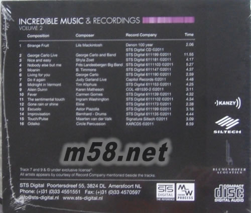 Incredible Music & Recordings 2 【招牌名盤 2】(m58.net) STS Digital自家開發之MW Coding Process再次獲得各大唱片公司支持,提供歌曲,集成專輯。Incredible Music & Recordings 系列,STS Digital對本【招牌名盤】系列信心十足,保證把最好的音樂,最佳之原錄音,最杰出之混音工藝放於本系列當中,做出最接近模擬音效(Analogue sound),由頭到腳都可以感覺到,不用估估?!只要聽。