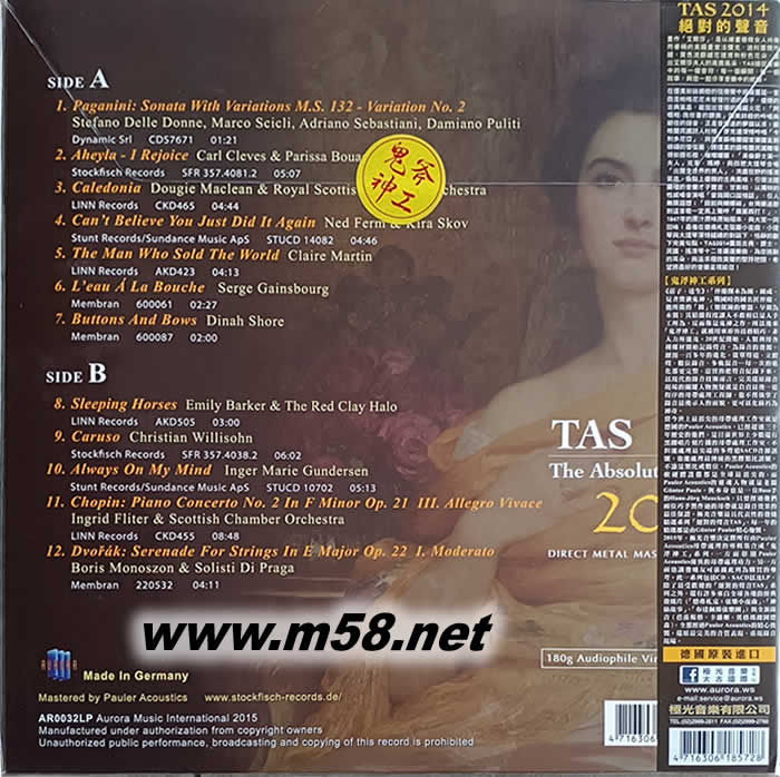 TAS 絕對(duì)的聲音LP 2014 180g 33RPM LP 鬼斧神工 黑膠 限量版專(zhuān)輯背面圖片