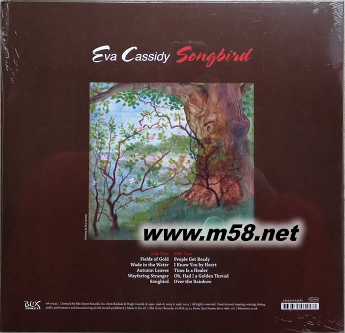SONGBIRD 黑膠(m58.net) Eva Cassidy1963年2月2日,Eva Cassidy出生于美國馬里蘭州,在她的生活里充滿著藝術與音樂,而民歌與爵士是他們家族最熱愛的音樂類型,自小父親就曾經帶領過Eva與哥哥一起組過樂團表演,不過因為Cassidy個性內向的關系,所以他們就越來越少演出了。即使Eva Cassidy 因為內向到幾乎是一種麥克風恐懼癥的情形,讓她選擇繪畫為其志向〔Eva Cassidy的繪畫作品是她的另一項杰作〕,但是Cassidy還是斷斷續續的幫一些樂團合音,終于在一次偶然機會之下遇到了制作人Chris Biondo,也開啟了她正式朝音樂發展的路途。 Eva Cassidy的聲音魅力,也終於讓她在1998年時,促使「Blix Street」唱片公司發行一張屬于她的精選集【Songbird】,這張專輯里除了挑選出之前Cassdy兩張專輯的歌曲外,也收錄 了她最早與Chuck Brown合作的專輯中最經典的歌曲《Over the Rainbow》,99年Eva Cassidy演唱的《Over the Rainbow》〔原唱者∶Judy Garland〕,讓英國BBC的DJ Paul Walters為之驚艷,再電臺播送這首歌時,引起聽眾熱烈回響,後來搭配英國BBC的一個慈善節目,這才令世人真正發現了這顆深海遺珠,所以【Songbird】這張專輯當時在英國狂賣,還曾奪下過英國金榜的冠軍。英國BBC民選統計的20世紀最偉大歌手名單中,Eva Cassidy名列第21位。