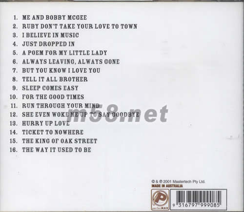 1. Me & Bobby Mcgee 2. Ruby Don't Take Your Love To Town 3. I Believe In Music 4. Just Dropped In 5. Poem For My Little Lady 6. Always Leaving Always Gone 7. But You Know I Love You 8. Tell It All Brother 9. Sleep Comes Easy 10. For The Good Times 11. Run Through Your Mind 12. She Even Woke Me Up To Say Goodbye 13. Hurry Up Love 14. Ticket To Nowhere 15. The King Of Oak Street 16. The Way It Used To Be