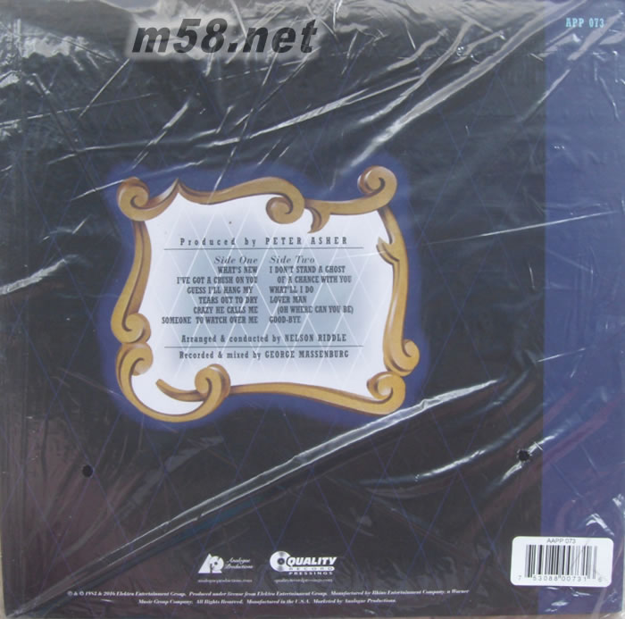 What's New Gold 黑膠(m58.net) 在流行音樂史上,很難找出幾個像琳達朗絲黛(Linda Ronstadt)這樣歌路如此寬廣、而且不論嘗試哪一種,都同樣獲得驚人成功的歌手。60年代末期,她以鄉村歌手的姿態崛起,70年代,她蛻變為流行搖滾的巨星。1980年,她第一次令人跌破眼鏡,登上大銀幕,主演了根據音樂劇《盤冉斯的海盜》(The Pirates of Penzance)改編的同名電影,四年之后,甚至更登上紐約大都會歌劇院的舞臺,演出了普契尼的歌劇《波西米亞人》。如果你以為這是她偶發的奇想,那你就錯了,因為她早在十七歲的時候,就曾經獲得進入歌劇界的機會,但是她卻因為生存的考量,而選擇了流行音樂。基本上,她對于搖滾樂并不是真正那么熱中,充其量也只是喜歡50年代之前的早期搖滾樂,而她最喜愛的,則是父母、親人文化根源的墨西哥歌謠曲,以及40年代以前的爵士樂經典。1983年,在制作人的建議之下,她大膽的嘗試灌錄一張傳統爵士樂歌謠曲的專輯,由資深大師尼爾森瑞鐸(Nelson Riddle)親自指揮自己的大樂團為她伴奏,推出了造成轟動的《What's New》專輯,而且欲罷不能的連續出了三張。