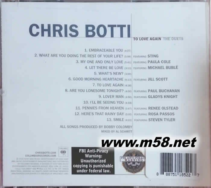 1. Embraceable You 2. What Are You Doing The Rest Of Your Life? - Featuring Sting 3. My One And Only Love - Featuring Paula Cole 4. Let There Be Love - Featuring Michael Bublé 5. What's New? 6. Good Morning Heartache - Featuring Jill Scott 7. To Love Again 8. Are You Lonesome Tonight? - Featuring Paul Buchanan 9. Lover Man - Featuring Gladys Knight 10. I'll Be Seeing You - Featuring Billy Childs 11. Pennies From Heaven - Featuring Renee Olstead 12. Here's That Rainy Day - Featuring Rosa Passos 13. Smile - Featuring Steven Tyler