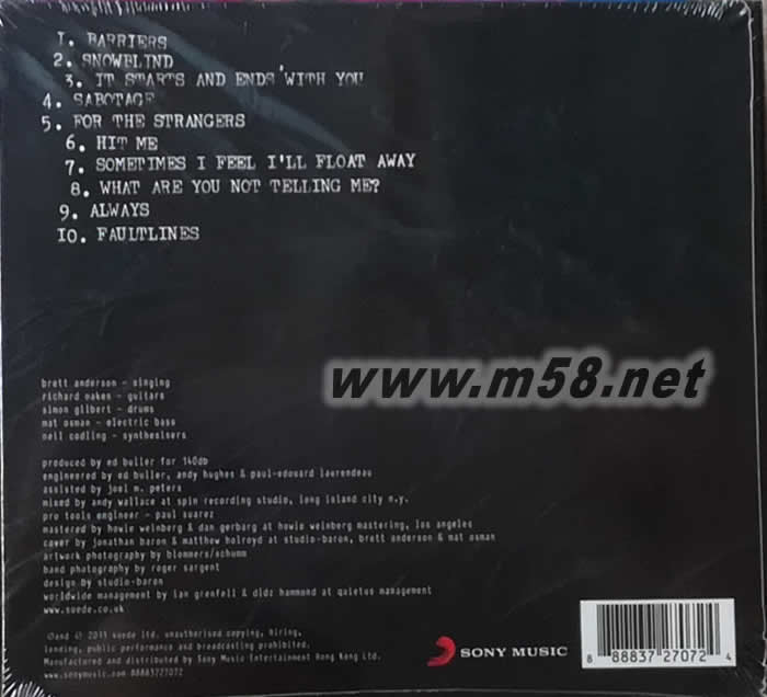 Bloodsports(m58.net) 英國著名搖滾樂隊 Suede, 2013 年重組推出全新大碟 “Bloodsports”, Sony Music Hong Kong 取得香港發行權. 全碟10首歌曲, 包括單曲 ”It Starts And Ends With You”, “For the Strangers” 及 ”Barriers” 等.