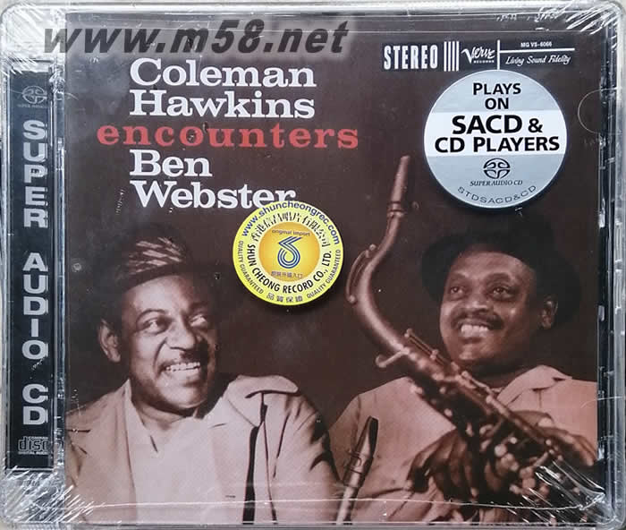 ENCOUNTERS 兩位薩克斯大師相遇 SACD(m58.net) 柯曼·霍金斯(Coleman Hawkins,1904-1969),美國演奏家,是爵士樂歷史上第一位重要的次中音薩克斯管演奏家,同時他也是有史以來最偉大的演奏家之一。他的演藝生涯持續了整整四十年(1925年至1965年),在此期間他的技藝堪與任何一位同行抗衡。 不僅以器樂音色圓潤飽滿著稱,招牌滑音更是優美流暢,他總能於吹奏之際透過細膩迷情的柔性延展傳遞出最馥郁芳馨的搖擺興味,也因此除了擁有“次中音薩克斯風之父”美稱