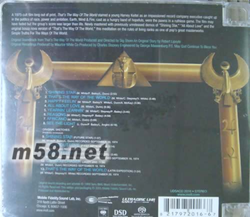 That's The Way Of The World 30周年紀念版SACD(m58.net) 這支融合了R&B, funk, soul, disco等多種曲風的樂隊于1969年由Maurice White在芝加哥成立,一共獲得過20項葛萊美提名,贏得了其中6個獎項。不過,他們成立之后長期都沒有贏得主流媒體的重視,在1975年,他們為同名電影制作了原聲大碟,電影的制片人恰恰就是“Superfly”的制片人Sig Shore(看來這位老兄對于打造成功的電影原聲碟特別有心得),這張原聲碟為樂隊迎來了商業上成功,Shining Star成為樂隊唯一一首冠軍單曲,并為他們贏得一座葛萊美獎(最佳R&B樂隊)。