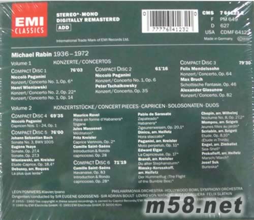拉賓MICHAEL RABIN 1936-72(小提琴集6CD)專輯背面圖片