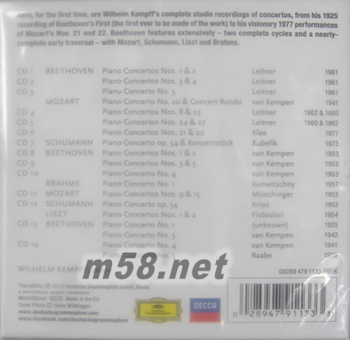 The Concerto Recordings肯普夫:鋼琴協奏曲錄音 14CD套裝專輯背面圖片
