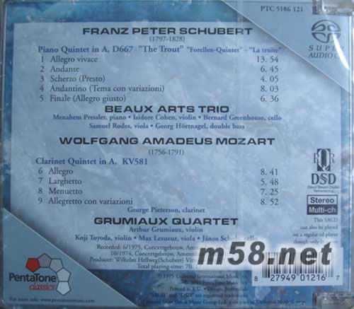 舒伯特:“鱒魚”重奏&莫扎特單簧管五重奏 SACD專輯背面圖片