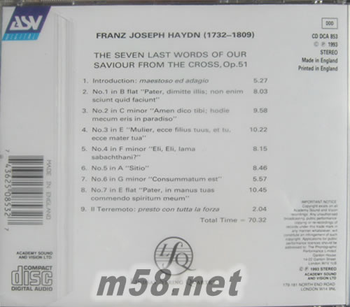 海頓 臨終七言HAYDN THE SEVEN LAST ROWDS OF OUR SAVIOUR FROM THE CROSS,OP.51(m58.net)