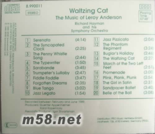 1.Serenata 2.The Syncopated Clock 3.The Penny Whistle Song 4.The Typewriter 5.Sarabande 6.Trumpeter's Lullaby 7.Fiddle Faddle 8.Forgotten Dreams 9.Blue Tango 10.Jazz Legato 11.Jazz Pizzicato 12.The Phantom Regiment 13.Buglar's Holiday 14.The Waltzing Cat 15.March Of The Two Left Feet 16.Promenade 17.Plink, Plank, Plunk 18.The Girl In Satin 19.Sandpaper Ballet 20.Belle Of The Ball