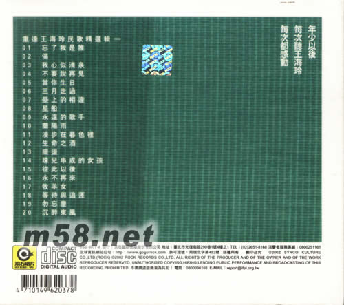 重逢 王海玲 民歌精選輯24BIT 金碟專(zhuān)輯背面圖片