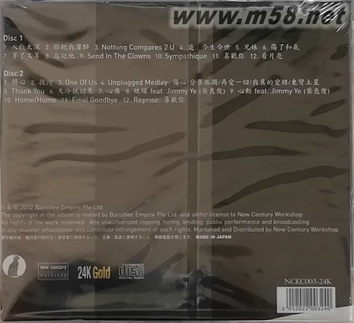 想像空間 24K金碟 2CD 限量版(m58.net) 陳 潔儀 Kit Chan Concert LIVE Recording 激發(fā)你 想 像 空 間 LIVE 的現(xiàn)場錄音 24KGOLD 更 好 的 音 質 2 CD M A D E I N J A P A N 蓋 印 限 量 版 編 號