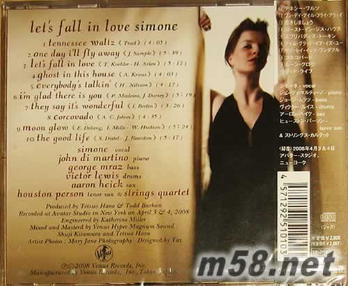 Let‘ Fall In Love 動人情感 Simone(m58.net) 靚聲爵士女歌手SIMONE 伙拍昔士風大師HOUSTON PERSON 及鋼琴大師JOHN DI MARTINO演繹多首經典名曲。柔情的唱腔及醉人的旋律怎不令人心動。日本VENUS遠赴紐約頂級錄制,音色通透極具立體感。