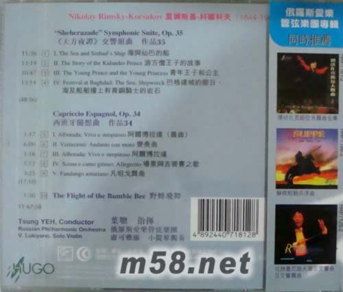 天方夜譚(m58.net) 俄羅斯愛樂管弦樂團/指揮:葉聰 作曲:里姆斯基-科薩科夫(1844-1908) 里姆斯基-科薩科夫最大的才能是他擅長將豐富的影象聯想化為多姿多彩的音色與音樂。他的很多作品,均與魔法幻想或神仙精靈有關,好讓他盡展所長。