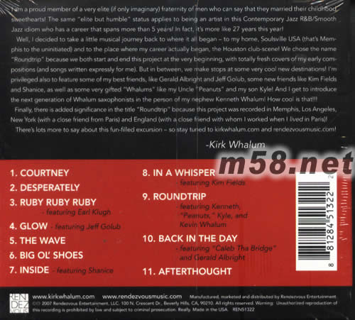 真我回憶(m58.net) 昔士風巨星kirk whalum演繹多首精彩用品,請來了eaul klugh,jeffbolub,gerald albright等巨星協奏引人入勝的爵士樂風,節奏鮮明的時尚韻味帶出感性情懷.原裝美國版.