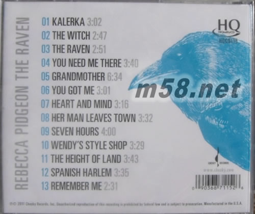 大烏鴉The Raven( HQCD)美版(m58.net) 人聲發(fā)燒錄音示范天碟 全球樂(lè)迷一致好評(píng)推薦 CHESKY總冠軍+臺(tái)灣銷售NO.1! 發(fā)燒迷千呼萬(wàn)喚 終於問(wèn)市! <權(quán)威評(píng)鑑> [蕾貝卡碧瑾,輕亮如同水晶般晶瑩剔透的音色,就是一部無(wú)懈可擊的人聲樂(lè)器]-CD Review [完美的演出及錄音,與其說(shuō)聽(tīng)她專輯時(shí)她就像在我們的面前演唱,倒是說(shuō)聽(tīng)眾被帶到了她演唱時(shí)的現(xiàn)場(chǎng)比較貼切;當(dāng)我們閉上雙眼聆聽(tīng),輕易地忘記了自己身在何方。]-Stereophile <音樂(lè)與演出> 身為讚譽(yù)有加的蘇格蘭女演員,同樣在音樂(lè)領(lǐng)域以創(chuàng)作型的美聲歌手大放異彩,融合了民謠流行爵士及居爾特的傳統(tǒng)樂(lè)的元素,她在流暢而抑揚(yáng)頓挫的精采作品中,散發(fā)無(wú)限的甜美詩(shī)韻,她慧頡而妙不可言的美聲就像心靈的催化劑,讓人沉醉在她溫暖而真誠(chéng)的音樂(lè)世界里。『大烏鴉』是她加盟Chesky廠牌的首張<一鳴驚人>的大作,因?yàn)樗恢毕M軌驍[脫現(xiàn)代錄音製作技術(shù)的過(guò)分修飾,所以開(kāi)啟了她跟Chesky的合作的契基,也創(chuàng)下了一個(gè)發(fā)燒樂(lè)史的輝煌典范→最完美的人聲錄音示范專輯,沒(méi)有過(guò)多的錄音室后製,專輯呈現(xiàn)了最自然的美聲質(zhì)感,令樂(lè)迷大呼-真是過(guò)癮。 開(kāi)場(chǎng)曲清新動(dòng)人的Kalerka,說(shuō)的是她理想的夢(mèng)幻國(guó)度,一開(kāi)始就讓我們體驗(yàn)到她如同天使般質(zhì)純潔凈又絲絲透露著朝陽(yáng)溫暖光芒的嗓音,唱著自由自在的天籟旋律。在Witch一曲中,我們見(jiàn)識(shí)到彷彿親臨女巫神秘儀式現(xiàn)場(chǎng),充滿生命力的吟唱。專輯同名單曲Raven,娓娓道出她不為外人道的內(nèi)心世界,音樂(lè)像來(lái)到文藝復(fù)興世紀(jì)的詩(shī)歌般愛(ài)戀,傾訴她對(duì)著愛(ài)人的深沉迷戀,歌詞是她的親密愛(ài)人名劇作家<大衛(wèi)馬密>所撰寫,貼切的印照了兩人深蜜的感情。You Need Me There是一首如同鄉(xiāng)谷間居爾特少女低吟的民謠,簡(jiǎn)單的結(jié)構(gòu)卻十分具有深刻的張力。Grandmother中的說(shuō)唱方式,不但是美國(guó)草根音樂(lè)的一種傳承,更融合了蘇格蘭式的激情,刻意模仿老人家音調(diào)的她,動(dòng)人地唱出了她祖母一段年輕的往事。輕鬆有如流行鄉(xiāng)村樂(lè)的You Got Me,說(shuō)的是兩個(gè)戀人形影不離的愛(ài),吉他的伴奏十分突出,她也表現(xiàn)出有別於學(xué)院派美聲之外,另一種不同灑脫的純樸風(fēng)格。Heart and Mind則是美聲民謠的一次最佳示范,她如同風(fēng)中飛翔般的繞樑輕吟,讓人都心神隨之昂揚(yáng)。最值得一提的是,她特別重新演譯的Spanish Harlem,在簡(jiǎn)單的伴奏中,我們聽(tīng)到了她最淳美飽滿的迷人歌聲,世界彷彿都隨著她而安靜了下來(lái),這首世界名曲因?yàn)樗狞c(diǎn)唱,重獲新生。 曲風(fēng)融合美聲派居爾特民謠、藍(lán)調(diào)、爵士以及流行樂(lè)的蕾貝卡,第一張?jiān)贑hesky的個(gè)人創(chuàng)作專輯,便讓大家發(fā)現(xiàn)樂(lè)壇多了一塊瑰寶,不僅唱作俱佳,她在戲劇方面以及發(fā)聲方面的訓(xùn)練,更支持著她的音樂(lè)演出,充滿著令人驚嘆的扎實(shí)與完美。這一張專輯的錄音,更是成為人聲發(fā)燒錄音的經(jīng)典示范專輯,HQCD版本,讓您貼近她無(wú)暇的真誠(chéng)與質(zhì)樸淳美,發(fā)燒玩家絕對(duì)不能錯(cuò)過(guò)! <錄音鑑賞> 不管是開(kāi)場(chǎng)曲Kalerka或是第12首Spanish Harlem,我們都可以清楚的聽(tīng)到如同回到錄音現(xiàn)場(chǎng)的原音音質(zhì),在Raven這首清新淡雅的居爾特風(fēng)格民謠,更是Chesky拿手的自然、超高解析的錄音技術(shù),因?yàn)闆](méi)有過(guò)多的錄音室修正下,空間的共鳴感便真實(shí)的紀(jì)錄在成品之中,她的美聲,更是讓人覺(jué)得對(duì)這張專輯—越陳越香、百聽(tīng)不厭!