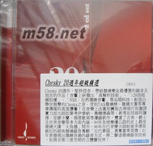 CHESKY 20周年超級精選(m58.net) 1986年- Chesky以重新混音懷爾德的[拉赫曼尼諾夫第二號協奏曲]大碟,深獲好評成功進軍全球樂壇發燒錄音圣殿 1988年–第一張Chesky發燒爵士錄音在RCA經典傳奇A錄音室誕生,以AKG C-24單支真空管麥克風收音,全球首張128倍速取樣的超優音質,讓樂迷大開耳界。 1991年–麥考伊.泰納和Chesky攜手共創佳績,「紐約大團圓」專輯勇奪全美各大爵士榜數週冠軍,并助名薩克斯風手-喬.韓德森,東山再起。 1994年–全球樂壇公認的史上最佳發燒天碟(all-time audiophile classic recordings) –【大烏鴉】專輯問市,迄今仍為臺灣最暢銷的發燒友入門必備碟。 1995年–首度將發燒錄音的現場移師到紐約圣彼得大教堂,ECM的跨界天團〔奧瑞岡〕也在此錄下了最讓發燒友推崇喜愛的經典橋段”The Silver Suite”。 1996年–古巴音樂大師-帕奎多.德里維拉的Chesky經典發燒錄音專輯「古巴素描」勇奪葛萊美獎。 1997年–Chesky領先群倫,為全球第一家以”96k/24bit超高取樣頻率”錄製專輯的唱片大廠,并由口碑民謠才女莎拉.K「流浪人兒」專輯拔得頭籌。 2001年–Chesky再度突破,以環繞音場的方式錄製了巴基披查列利的「搖擺現場」專輯 ,將二聲道發燒錄音技術,拓展至第三度空間的立體聲世界。 2003 年–慧眼獨具地邀請到巴西女唱將羅莎.芭蘇絲錄製「情比金堅」專輯,羅莎后來成為美國傳媒的新寵,也順利地加盟新力唱片事實上,Chesky不但擁有最尖端的錄音技術,更為樂迷發掘出最佳的藝人,包括:吉他女皇-貝姬.阿薩德、芭莎諾瓦天后-安娜.卡蘭及約翰.披查列利等,都是最佳的例子。 2004年–瑪塔.歌美「天水之歌」一鳴驚人,空降告示牌世界音樂專輯榜前10名, 發燒友一致叫好。 2005年–Chesky擺脫刻板印象,自acoustic跨足electric,讓搖滾迷見識到鼓、電吉他跟貝斯的自然平衡,體會真實的力道、能量跟空間感。 2006年–Chesky 20週年,堅持信念,帶給發燒樂友最優質的錄音及悅耳的作品。