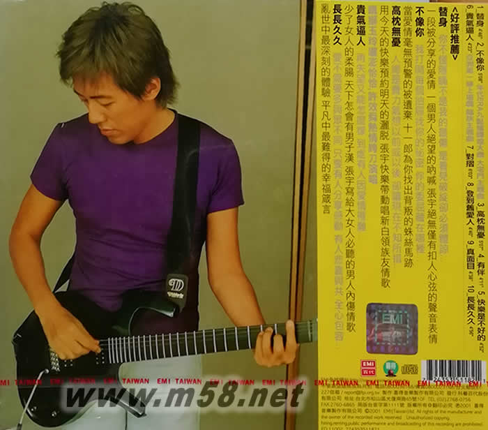 CD 01. 替身 02. 不像你 03. 高枕無憂 04. 有伴 05. 快樂是不好的 06. 貴氣逼人 07. 對折 08. 等到舊愛人 09. 真面目 10. 長長久久 VCD 不像你 長長久久 高枕無憂