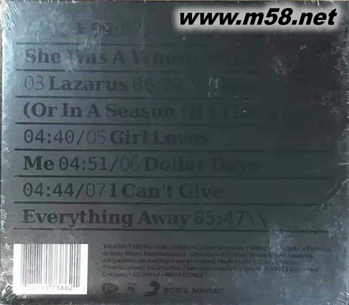 Blackstar 黯黑秘星(m58.net) 素有搖滾變色龍之稱的David Bowie,總在音樂中暗藏玄機,大膽且前衛的開啟無限視野,立下20世紀搖滾史上傳奇新頁,游走於民謠、迷幻、龐克、搖滾、電子派系,結合電影、舞臺劇、超現實主意、佛學概念,展現品味獨到的穿著打扮抓住鎂光燈焦點,更是日後視覺系的宗師。Q雜誌「本世紀最偉大的明星」、NME「史上最具影響力的藝人」、滾石雜誌「史上最偉大搖滾藝人」、BBC「百大英國人」,1996進入「搖滾名人殿堂」、2013年成為「科幻奇幻名人堂」會員!累積全球1億4000萬銷售,葛萊美+全英音樂+艾美各獎全數到手。自1968年開始,David錄製首張個人專輯《Love You Till Tuesday》,帶有樸實的民謠風格,之後學了一段時期的戲劇表演,《The Man Who Sold The World》引起世人矚目。《The Rise & Fall Of Ziggy Stardust And The Spiders From Mars》以科幻與神話為題材的經典之作,同年的巡迴表演中,David把自己裝扮成一位身著奇裝異服的太空人。夥同John Lennon推出一部經典鉅作《Young American》,並參與Lou Reed的專輯監製,充分將全方位才氣展露無遺。接著與先鋒音樂大師Brian Eno合作兩張含有大量合成配樂的《Low》和《Heroes》,過人的實驗性超乎想像。2013年寶刀未老的推出《The Next Day》,贏得每日電訊報和Q雜誌滿分力捧,全面入圍水星音樂、葛萊美、全英音樂等重要獎項! 在歡度David的69歲大壽之際發行全新大碟《Blackstar》,籠罩一整片黑色煙霧,異常神秘的調性精彩上演。全輯7首歌曲,卻長達42分鐘,將延續並且變本加厲的把玩Avant-Garde風格,滾石雜誌背書:「展現藝術家氣派、令人坐立難安的新專輯,自70年代以降送上鮑伊最棒的反流行經典」。由伴隨David經歷各世代的長期合作夥伴,也是幕後混音高手Tony Visconti (T.Rex、Morrissey、Paul McCartney)協力掌控,再度將潛在David內心的瘋狂因子勾引出來。原本超過11分鐘的同名曲〈Blackstar〉,最後剪輯成9分57秒,微妙切換兩個部分,上半場David傳達Avant Jazz風格,挾帶Drum and bass以及太空搖滾的元素,下半場轉換清亮場景之下,卻意外譜入Acid House和Blues的變奏,準備體驗這一趟奇幻的音樂旅程;David的外百老匯音樂劇同名曲〈Lazarus〉,想像力延伸的概念運用曲中,掀起虛無混亂的層層波動;早在2014年的精選《Nothing Has Changed》中曝光過,從原7分24秒縮短至4分40秒的〈Sue (Or In A Season Of Crime)〉,戲劇化十足的牽連截然不同質地,鋪天蓋地的迎面襲來,難以招架這位傳奇大師詭譎理念與聽覺衝突!