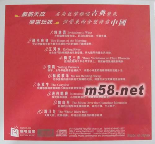 1.將進酒 古箏輪拂弦樂奔涌,韻白似醉狂,半歌半嘯 2.丑末寅初 字正腔圓的京韻大鼓在京胡和中阮的襯托下趣盎然 3.江河水 老生泰門韻味獨具的京劇聲線,與大提琴和簫水乳教融 4.梅花三弄 西洋弦樂與千名琴背景上,程派幽咽聲線疏影橫斜 5.憫農 柳琴,木琴等趣致音色襯托下,京劇小神童的專線稚嫩而底蘊十足 6.蘇武牧羊 名凈滄桑的低吟與青衣婉轉的吐訴,刻書在深沉寬廣的低音樂境 7.小放牛 婉轉悠揚的戲曲稚腔小調由清靈童聲唱來,別有一番動情 8.漁舟唱晚 箏弦拔弄漣漪,小打輕敲幕色,婉轉聲線套色眼觀花 9.關山月 舒展大提琴和寬廣的弦樂,衰而不傷,中正和平 10.滿江紅 大鐘大鼓,弦樂似海,吟唱出壯懷激烈的精忠報國