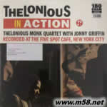 THELONIOUS IN ACTION 爵士鋼琴與薩克斯 黑膠(m58.net) LP,爵士鋼琴大師蒙克率領的塞隆尼斯.蒙克四重奏與薩克斯大師約翰尼·格里芬的一張精彩現場錄音,蒙克輕盈的鋼琴配上約翰尼的爆管碰撞出不一樣的火花,被豆瓣評為100張最偉大的爵士現場專輯。
