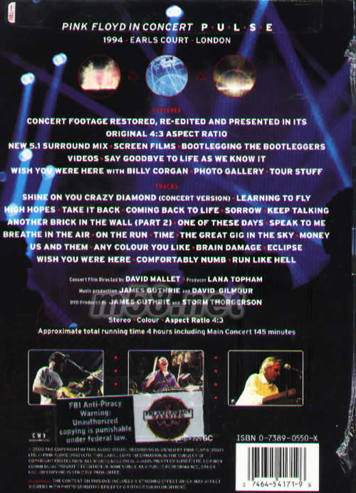CONCERT FILM DIRECTED BY DAVID MALLET PRODUCER LANA TOPHAM MUSIC PRODUCTION JAMES GUTHRIE AND DAVID GILMOUR DVD PRODUCED BY JAMES GUTHRIE AND STORM THORGERSON STEREO COLOUR ASPECT RATIO