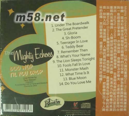 Doo Wop Til You Drop 回聲四重唱(m58.net) 發燒樂評人一致推崇,回聲四重唱 ,近年唯一男聲天碟,讓你仔細體驗人聲的強大動態與四重唱的美感 Mighty Echoes在八十年代成立,以純人聲四重唱Doo Wop風格演繹經典歌曲,是洛杉機眾多同類型合唱團中的表表者,曾為前美國總統克林頓及於超級碗演出,亦曾與Ray Charles及 Steve Wonder這些巨星同場獻技,Mighty Echoes 四位成員的歌聲優美,主音與和音的配合已達至四重唱的完美境界,人聲被認為是最優美的樂器,聽Mighty Echoes 不用樂器伴奏的四重唱令人深深體會到這個說法,這張CD的錄音本來已經十分靚,再經過Keith Yip製作母帶后,音效更大幅提升,像真度驚人,Mighty Echoes四位成員有如整齊地排列在眼前演出,人聲的質感和動態一流,Track 1低音部的強勁沖力,Track 3 的空間感都叫人嘆為觀止。