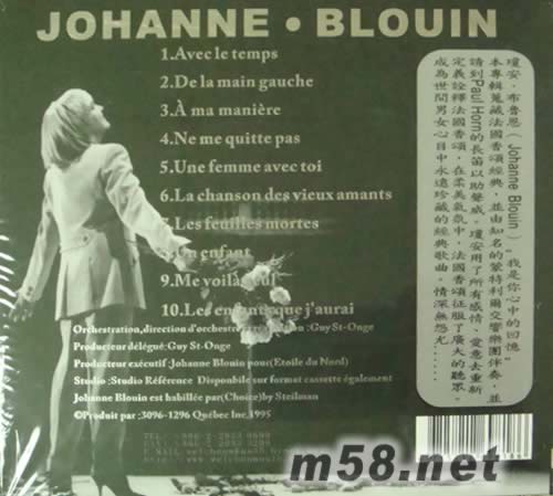 我是你心中的回憶Jouvien-moi(m58.net) 法國女歌手Johanne Blouin(瓊安‧布魯斯),渾厚兼具高亮的聲音,對歌曲細緻的描繪,是Johanne Blouin的特色。 出身音樂世家,或許就是因為Johanne Blouin曾是音樂劇的演員,聲音的呈現充滿戲劇感,每一次的起落和收尾都那麼地圓潤舒適,柔軟中帶著強勁的力道,渾厚中帶著細膩的情感表現,高亮的聲線卻不感到突兀,聽在耳裡卻是百感交雜,彷彿有太多的話說也說不完。即使聽不懂法文,也能透過Johanne Blouin的聲音,準確地抓住歌曲所要表達的情緒。 這張專輯是Johanne Blouin的第五張白金唱片,推出時間約莫在1995年時,與蒙特婁交響樂團30位音樂家共同錄製,其中「Les Feuilles Mortes」請到爵士樂界知名長笛樂手Paul Horn為歌曲增添更多層次和深度,也因此與其他歌手演唱的「Les Feuilles Mortes」不盡相同。而第二首「De La main gauche」(我的左手)也曾獲得「TAA臺灣第17屆國際HI-END HI-FI音響大展」精選CD第一首曲目。 每首曲目都是當年精挑細選的經典法國情歌,由於對聲音的要求,Johanne Blouin每張專輯的錄音品質都很不錯,無論是高低音的處理等等,都非常溫和,不因歌手的高亢,而出現過度銳利的聲音表現,相對地在低音的表現上也頗不錯,每個聲音顆粒都算清楚,幾乎沒有聽到模糊的狀況。 無論你是音響發燒友或是音樂愛好者,這都是一張絕對值得收藏的專輯,Johanne Blouin的聲音禁得起你抽絲撥繭地挑惕,這也是為何經典之所以為經典吧。(