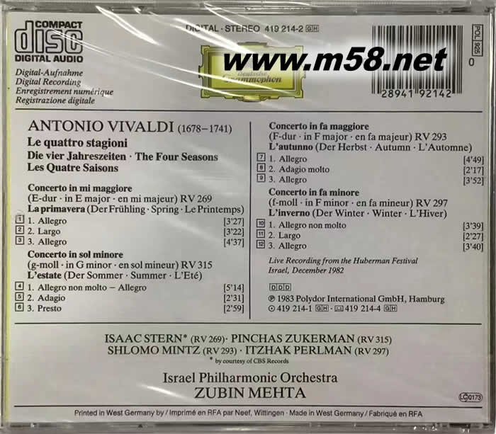 祖賓·梅塔 - 維瓦爾第:四季Zubin Mehta Vivaldi The Four Seasons專輯背面圖片