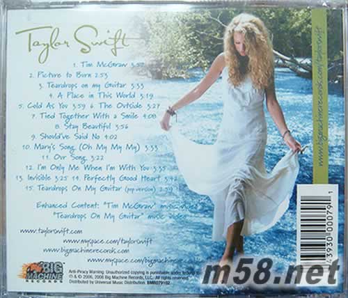 價格為估,以實到貨為準! Taylor Swift CD+DVD 美國版(m58.net) 這張專輯十分不錯,Taylor Swift以自己的音樂素養演繹了一種流行搖滾樂和鄉村樂中和后的音樂作品,整張專輯很多曲目都是她自己操刀作詞,十分耐聽! 沒錯Taylor Swift相對而言是一個新人,以出道單曲《Tim McGraw》一炮走紅,絕對是影響今后樂壇走勢的潛力股,值得關注的新人