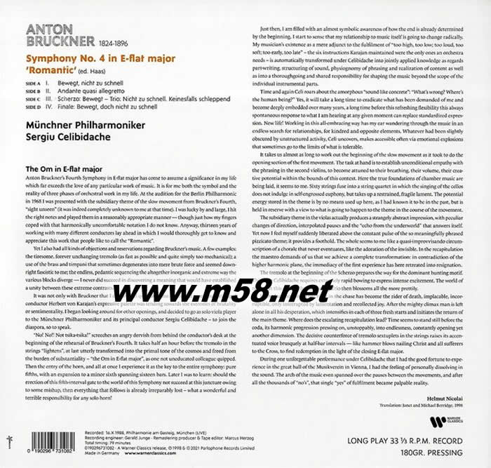 BRUCKNER SYMPHONY NO.4 Sergiu Celibidache, Münchner Philharmoniker 黑膠專輯背面圖片