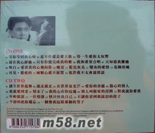 CD ONE 01. 等你等到我心痛 02. 忍不住還是愛上你 03. 用一生愛你太短暫 04. 請在我心經過 05. 只有你能完成我的歌 06. 我和希望合唱 07. 天知道我難過 08. 明白 09. 愛從我的心飛向你 10. 晚安 11. 藍色夾克 12. 變奏的愛情 13. 危險的她 14. 再見,親愛的 15. 兩顆心就不寂寞 16. 也許我不太會說情話 CD TWO 01. 讓全世界起舞 02. 說走就走 03. 在世界放光芒 04. 愛你的余溫 05. 傷心的情人 06. 愛就愛到老 07. 情未了 08. 我的心在你這邊 09. 別人叫做家的房間 10. 對我說你愛我 11. 年輕搖滾 12. 一往情深 13. 怪只怪我自己 14. 不讓你看到我流淚的樣子 15. 平靜的把你遺忘 16. 一個像我這樣那個的男子