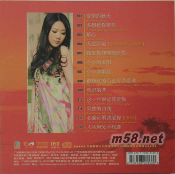 01 愛情的秋天 02 多想把你留住 03 猜心 04 無法原諒(回家的誘惑主題曲) 05 我愛你卻要離開你 06 小小的太陽 07 小小新娘花 08 被傷過的心還可以愛誰 09 難忍的悲 10 這一生說過我愛你 11 突然的自我 12 心痛證明我愛你(原創) 13 人生何處不相逢