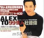 99情人杜德偉(m58.net) 99人氣買氣冠軍男歌手 情歌盟主三周暢銷30萬張不只臺灣溺愛 ALEX進軍日本樂壇首步曲[WHY]中文搶聽版 慶功收錄 新包裝 1+1CD ALEX TO 99情人杜德偉 99全新國語專輯 小蟲音樂制作日本 [五花八門淺草橋]高人氣新秀 小林優美跨國 MTV合作 日本傳媒破天荒衡星追蹤特別企劃 TVBS八點檔 [聊齋]片頭曲 [把你藏起來] 福特TIERRA-LIFE汽車廣告曲[情人] 三立都會臺港劇[真愛]片頭片尾曲[WHY][把你龐壞] 內附L.A寫真POST CARDS 99人氣買氣冠軍男歌手 擋不住的R&B率真性感ALEX與小蟲繼[鐘愛一生]再創KTV上癮情歌[WHY]加送[情人]卡拉OK版 99情人杜德偉浪漫全臺三部曲 [全省預購聽賣會]一日內成功搶鮮預購9900張CD [世紀婚禮大見證]用歌聲祝福60對真愛情人 [中日合作特別企劃]日本[五花八門淺草橋]高人氣新秀小林優美跨國MTV日劇式拍攝 全亞洲放送