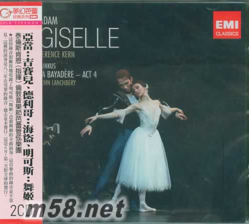 亞當:吉賽兒/德利哥:海盜/明可斯:舞姬 / 泰倫斯肯恩(指揮) 2CD(m58.net) ★這份錄音很難得地收錄了明可斯「舞姬」芭蕾舞劇的全曲演奏,這首樂曲的錄音並不常見,這里的演奏是八三年在雪梨的錄音,過去並未發行,這是EMI第一次對全球的發行。 吉賽兒的故事描寫在中世紀萊茵河畔的葡萄園中,正值採收季節,吉賽兒和母親巧遇奧布列希公爵,后者原本是趁成婚前喬裝出來採摘野麥,不料巧遇吉賽兒,乃以言語調戲,讓吉賽兒為之神魂顛倒,村中少年希拉良深愛吉賽兒,乃警告她不可誤信外人言,吉賽兒不聽。不久希拉良揭穿公爵的身份,吉賽兒傷心之余就死了。吉賽兒的魂魄隨著眾多同樣受男人欺負而死的林中女妖一同出現,來到尋找她墓地的公爵面前,公爵求她原諒,吉賽兒原諒了他,兩人共舞后,吉賽兒消失不見。而希拉良也被這些女妖投入湖中死去。同時公爵也被女妖判死刑,但吉賽兒救了他一命,吉賽兒也因為擺脫了林中女妖的怨氣和仇恨,而得以自由,回到自己的墓地獲得平靜。全劇終。 這份錄音很難得地收錄了明可斯「舞姬」芭蕾舞劇的全曲演奏,這首樂曲的錄音並不常見,一般多是芭蕾錄影較常見,這里的演奏是八三年在雪梨的錄音,過去並未在EMI發行過,這是EMI第一次對全球的發行。
