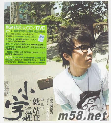 價格為估,以實到貨為準! 就站在這里 影音精裝版(m58.net) 我不說承諾 因為我不走開… 他的音樂 就是宇眾不同 2009樂評最期待x歌迷最熱愛 CD】 11首宇式風格 放肆玩樂全新創作 【DVD】長達55分鐘精彩影音畫面! 收錄【20090704愛上純棉音樂會LIVE精華】+【就站在這里】MV拍攝花絮+【就站在這里】MV +【一顆蘋果】MV拍攝花絮+【一顆蘋果】MV +【漂亮女孩】MV+【練愛】MV 而針對改版,小宇也將舉辦北中南「夏日宇你同樂會」的巡迴演出將以最直接最熱力的Live演出與所有喜歡他的歌迷同樂! ☆推薦曲☆ * 愛上----簡單就很迷人,小宇最溫柔的盛夏情歌(2009美國棉年度廣告主題曲) * 說分手之后----繼「終於說出口」之后,又一首唱進心里的動人情歌 * 漂亮女孩----小宇的玩家級示范,音樂就要好好玩! * 就站在這里----用情歌擁抱自己,聽小宇唱出對感情的執著與堅定! * 一顆蘋果----每個人的平凡都是如此獨一無二!你沒聽過的電音x搖滾小宇! * 練愛----很ㄍㄧㄥ的小宇用情歌唱出渴望戀愛的甜蜜心情!