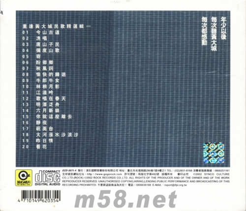 重逢 黃大城 民歌精選輯24BIT 金碟專輯背面圖片