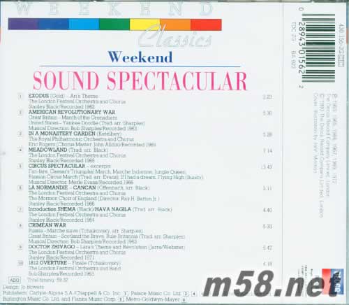 音響奇觀(大頭仔),decca weekend系列,著名發燒名盤,現decca重新以金碟形式再版發行。此唱片又名“音響絕唱”,現在早已絕版,市面上不多的一點兒存貨也已被炒到天價。