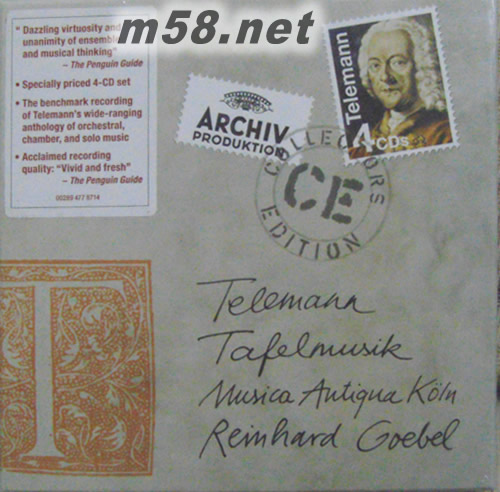 價(jià)格為估,以實(shí)到貨為準(zhǔn)! Telemann:Tafelmusik泰雷曼 巴洛克時(shí)期宴席音樂(lè)(m58.net) ☉戈貝爾指揮 / 柯隆古樂(lè)團(tuán) 「宴席音樂(lè)」是十六、十七世紀(jì)歐洲特有的一種音樂(lè)型式,用途是在宴會(huì)、戶外活動(dòng)時(shí),當(dāng)成背景音樂(lè)使用,當(dāng)時(shí)許多作曲家都創(chuàng)作有「宴席音樂(lè)」。而在巴洛克時(shí)期的「宴席音樂(lè)」里,泰雷曼的作品公認(rèn)是最受歡迎,至今,幾乎「泰雷曼」與「宴席音樂(lè)」已經(jīng)成了同義詞。泰雷曼是一位多產(chǎn)的作曲家。在他為數(shù)眾多的作品里,又以協(xié)奏曲為最大宗。雖然在有生之年里,泰雷曼因?yàn)槁氏让芮薪Y(jié)合音樂(lè)商業(yè),甚至在自己的樂(lè)譜印上廣告詞而迭遭衛(wèi)道人士指責(zé)批評(píng),但是,他們都無(wú)法否定泰雷曼作品中流暢嫻熟的技巧與音樂(lè)的魅力。 在戈貝爾與柯隆古樂(lè)團(tuán)的錄音里,泰雷曼一直佔(zhàn)有極重要的份量。由於柯隆古樂(lè)團(tuán)的音樂(lè)家素質(zhì)非常高,演奏效果自然非同一般。他們帶給泰雷曼的作品生動(dòng)迷人的活力,但是又不會(huì)顯得浮夸,並且刻畫(huà)樂(lè)曲的結(jié)構(gòu)與對(duì)比性及豐富度。