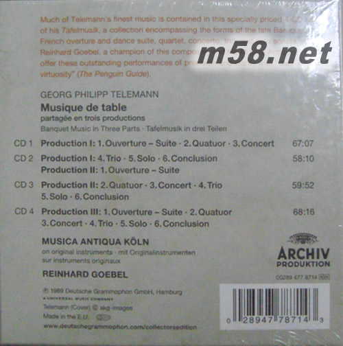Telemann:Tafelmusik泰雷曼 巴洛克時(shí)期宴席音樂(lè)專輯背面圖片