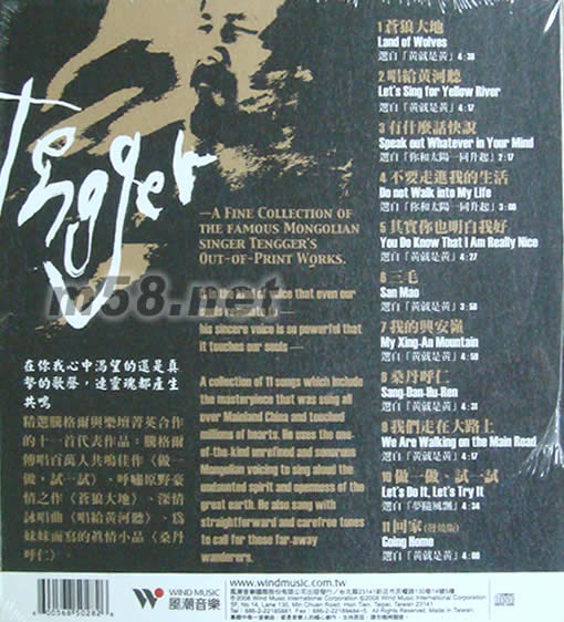 唱給黃河聽(m58.net) 在你我心中渴望的還是真摯的歌聲,連靈魂都產(chǎn)生共鳴. 精選騰格爾與樂壇青英合作的十一首代表作品:騰格爾傳唱百萬人共鳴佳作<做一做,試一試>,呼嘯原野豪情之作<蒼狼大地>,深情詠唱曲<唱給黃河聽>為妹妹面寫的情小品,<桑丹呼仁>