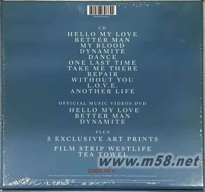 Spectrum Deluxe 珍愛之光(m58.net) 英國21世紀最暢銷男團、14首英國金榜冠軍單曲,成軍20週年復出樂壇,加盟環球音樂首張專輯 ★強勢收錄紅髮艾德量身打造、英國iTunes冠軍主打" Hello My Love";感動直達內心"Better Man"等11首真情力作 等待結束!2018年10月3號西城男孩Westlife在社群網路無預警上傳了一支短片,短短的35秒4位成員尚恩Shane Filan、尼基Nicky Byrne、奇恩Kian Egan、馬克Mark Feehily一一入鏡,最后宣告正式回歸樂壇,全球樂迷激動落淚,瞬間成了樂壇震撼彈,媒體還封為「最強回憶殺」。 英國21世紀最暢銷男團、14首英國金榜冠軍單曲締造、奪下全4次「全英年度專輯」、英國樂史上唯一「出道前7首單曲皆空降冠軍」、4項金氏世界紀錄等傲人紀錄,更累積了多達97座權威性大獎認證,成軍20週年的Westlife從Boy Band到家喻戶曉的傳奇天團,在流行樂界所創造的成績至今無人能敵。 2012年宣告解散的Westlife,在2018年10月3日重組回歸,並入主環球音樂Virgin EMI旗下,而出道20年的他們,憑著10張歷年專輯,累積了6次英國金榜冠軍、8次愛爾蘭榜冠軍,並且在全球擁有超過4500萬張專輯銷量,包含單曲共締造了超過5500萬張的驚人銷量;2019年回歸樂壇的他們,再次重組並進到錄音室,團員彼此之間的默契依然良好,主唱Shane Filan表示,「我們並不想要改變Westlife的風格,我們想要的是突破,打造出『Westlife 2.0』,一個更好的我們。因此,我們的目標就是創造出有史以來最棒的一張專輯,我們深信所有我們的樂迷都值得這張最棒的作品?!贡С种@樣的信念,Westlife交出了睽違7年之久的動人之作【Spectrum】。 【Spectrum】是一張獻給家庭與歌迷的禮物,團員驚喜邀請當紅的Ed Sheeran、英倫鬼才Steve Mac聯手監製,替Westlife打造一張再攀巔峰的回歸之作;由Ed Sheeran炮製的首支主打"Hello My Love",快速榮登英國金榜實體冠軍寶座,帶有些許電子節拍的曲風,彰顯出Westlife令人懷念無比的歌喉,四名成員的輪流演唱以及宛如天籟般的合音;打入蘇格蘭單曲榜亞軍的”Better Man”,重現Westlife最原汁原味的深情風格,彼此互相輝印的歌聲交織成一曲優異的杰作,讓人見識到Westlife寶刀未老的實力;節奏輕快帶有Synthpop的”Dynamite”,透過時下流行的電子音符的串聯,突顯了團員們在當今樂壇依然無可取代的歌聲,可說是專輯中最不可忽視的作品之一。
