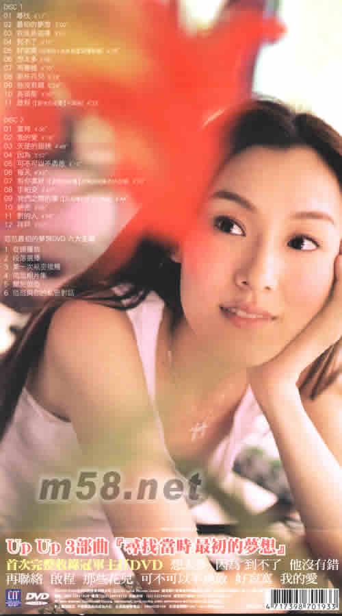 DISC 1 01.尋找 02.最初的夢(mèng)想 03.我就是這樣 04.到不了 05.好寂寞(范瑋琪+光良首度深情對(duì)唱) 06.想太多 07.再聯(lián)絡(luò) 08.那些花兒 09.他沒(méi)有錯(cuò) 10.長(zhǎng)頭發(fā) 11.啟程(愛(ài)情白皮書(shū)片尾曲) DISC 2 01.當(dāng)時(shí) 02.我的愛(ài) 03.天使的翅膀 04.因?yàn)? 05.可不可以不勇敢 06.每天 07.有你真好(愛(ài)情白皮書(shū)片尾曲與楊丞林合唱) 08.手帕交 09.我們之間的事(又見(jiàn)橘花香片尾曲) 10.絕密 11.對(duì)的人 12.拜拜 范范最初的夢(mèng)想DVD 六大主題 01.從頭播放 02.段落選擇 03.第一次親密接觸 04.范范相片集 05.關(guān)于范范 06.范范與你的私密對(duì)話