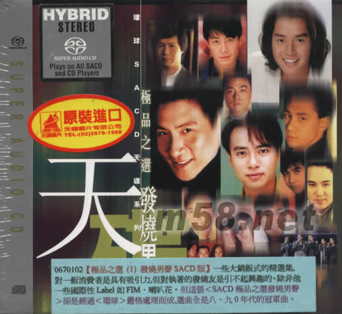 極品之選監聽版1(群星)SACD(m58.net) 0670102[極品之選(1)發燒男聲SACD版]一些大鍋飯式的精選集,對一般消費者是具有吸引力,但對執著的發燒友是引不起興趣的.除非他一些國際性LABLE如FIM\喇叭花。但這張《SACD極品之選發燒男聲》卻是經過<環球>嚴格處理而成,選曲全是八、九0年代的冠軍曲。
