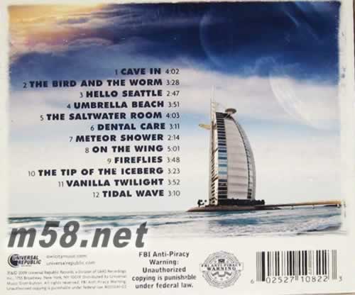1 Cave In - 04:02 2 The Bird and the Worm - 03:27 3 Hello Seattle - 02:47 4 Umbrella Beach - 03:50 5 The Saltwater Room - 04:02 6 Dental Care - 03:11 7 Meteor Shower - 02:13 8 On the Wing - 05:01 9 Fireflies - 03:48 10 The Tip of the Iceberg - 03:22 11 Vanilla Twilight - 03:51 12 Tidal Wave - 03:10
